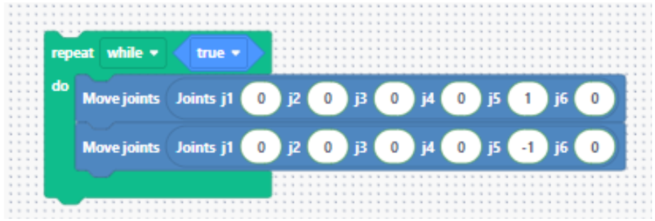 Move axis 5 between two angles (e.g., −1.0 rad ↔ +1.0 rad). Create a Blockly program and name it “PID_tuning”.