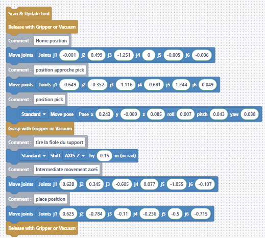 💡 Adjust j5 in your blocks/poses to set a clear orientation and observe the impact of PID parameters.