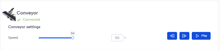 On the equipment tab of NiryoStudio, scan the tools and show how the conveyor works in forward, backward, and different speeds.