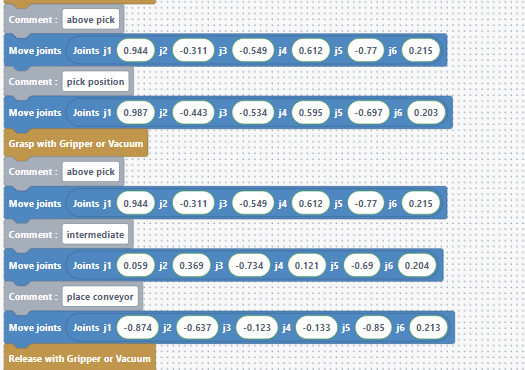 “I copy-paste the position above the object to lift the object safely, then take an intermediate position between the slope and the conveyor, high enough to avoid obstacles.”