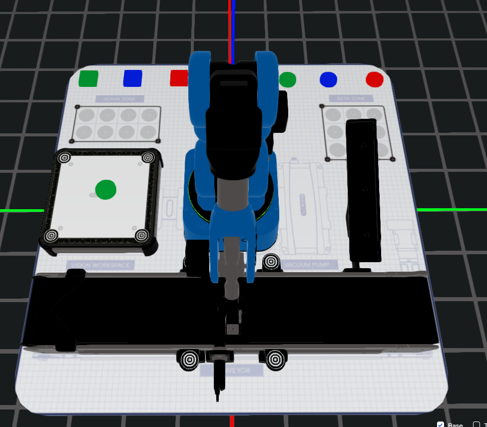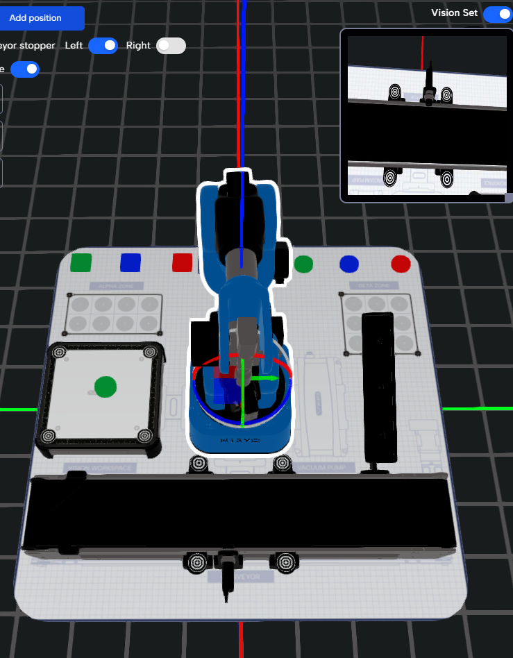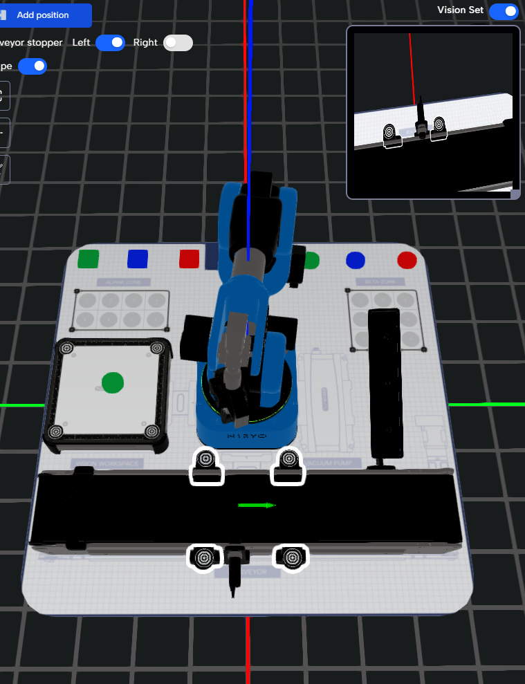 Set up the conveyor workspace, and the IR sensor as shown in the reference picture.