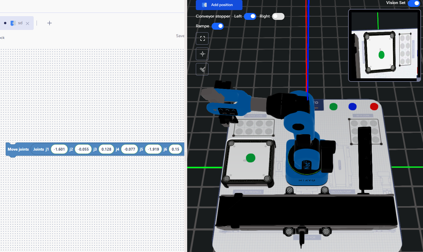 🎯Build a complete vision pick and place inside the simulation then Participants transfer the code to the real robot.