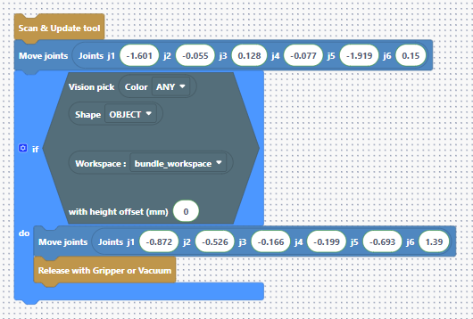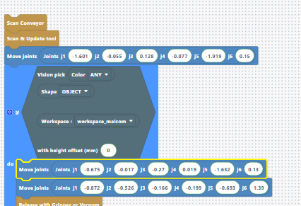 If you are using the program provided by Niryo, pay close attention to the Vision Pick blocks, as the workspaces are not pre-selected.
