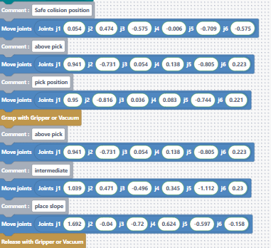 “I copy-paste the position above the object to lift the object safely, then take an intermediate position between the slope and the conveyor, high enough to avoid obstacles.”