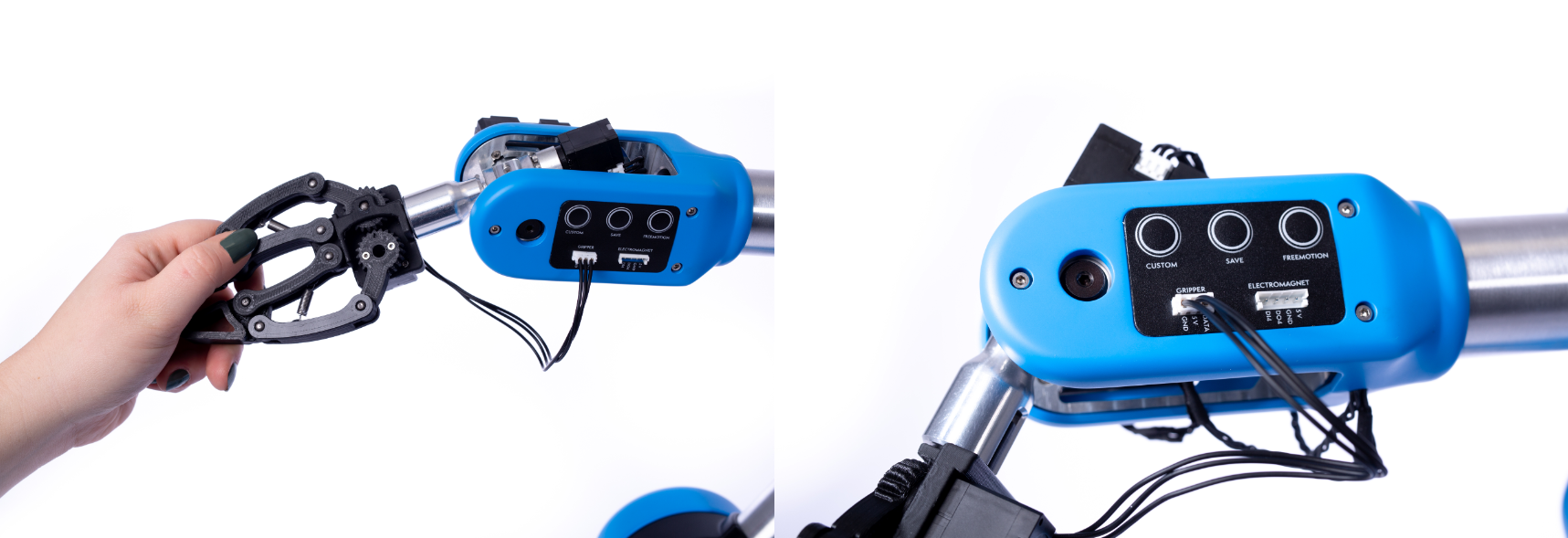 - Connect your grippers: custom, adaptive, large and also vacuum pump and electromagnet