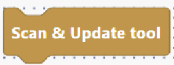 - Vous pouvez également utiliser le bloc « Scan & Update » pour lancer une analyse de toutes les entrées/sorties du robot et commencer à utiliser les outils dans votre programme Blockly.