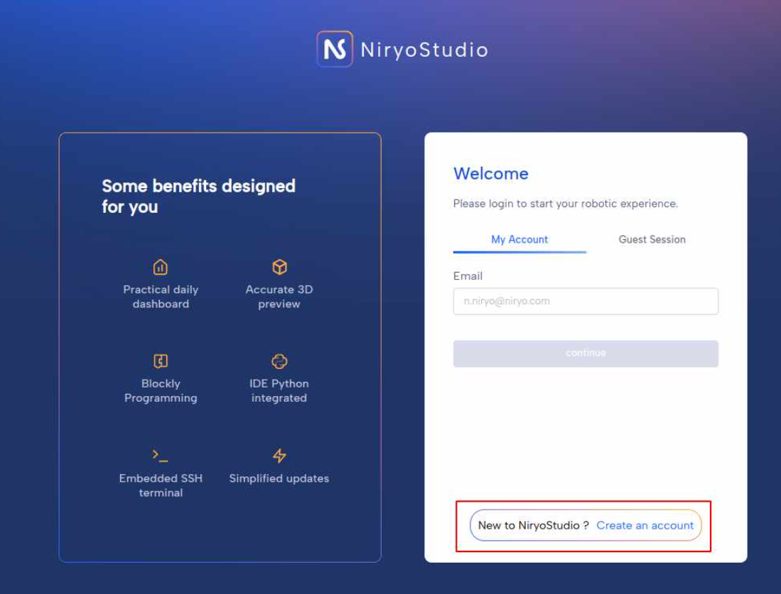 Return to the NiryoStudio login page.